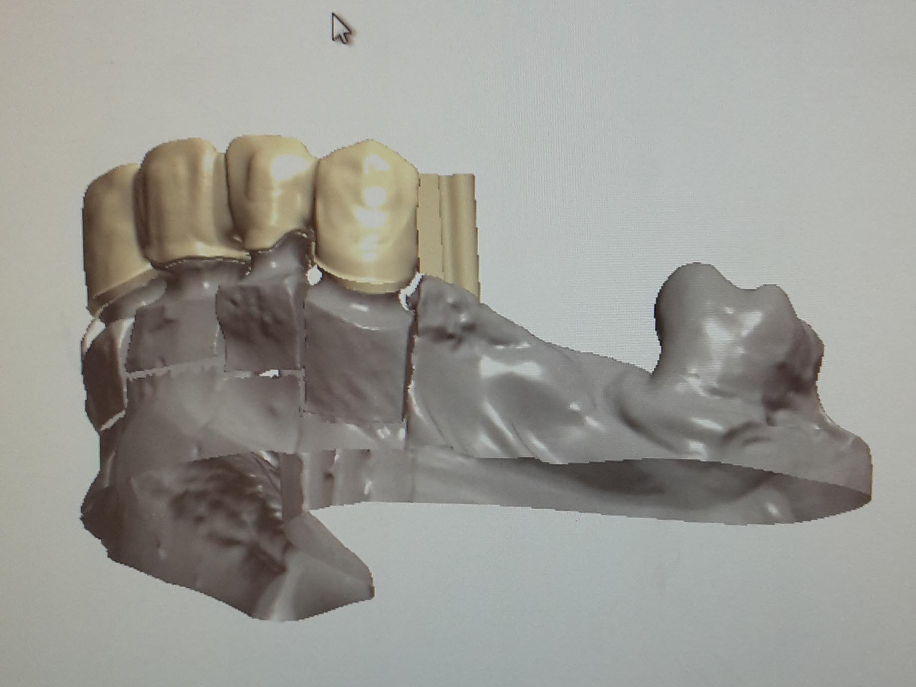 Nun folgt die Datenverarbeitung (CAD). Hierzu benutzen wir optimierte Rechner und spezialisierte Software, die es uns ermöglichen die zahntechnische Arbeit digital darzustellen und zu bearbeiten. Anhand der digitalen Daten können wir nun am Computer individuelle Abutments, Inlays, Kronen- und Brücken, Teleskope und Geschiebe oder Schienen entwerfen. Besonders vorteilhaft ist dabei, dass der so entworfene digitale Zahnersatz im virtuellen Gebiss eingesetzt und so die Funktion im Mund simuliert werden kann.