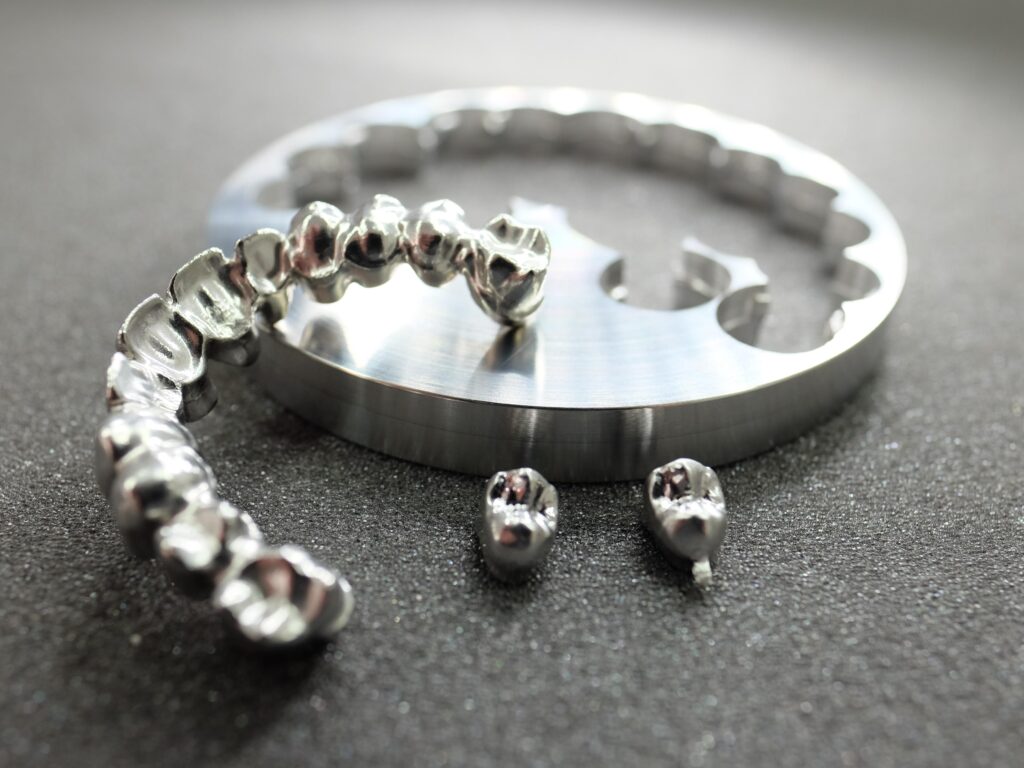Geschiebe- und Teleskoparbeiten können wir aus Zirkon oder Metall mithilfe unserer computergestützten Frästechnik fertigen.